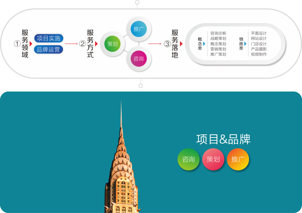 我們提供:項(xiàng)目全程策劃、推廣。營銷一站式的活兒我們?nèi)酶桑榱损B(yǎng)家糊口,這些手藝活兒我們也得干:LOGO設(shè)計(jì)、VI設(shè)計(jì)、門戶網(wǎng)站。